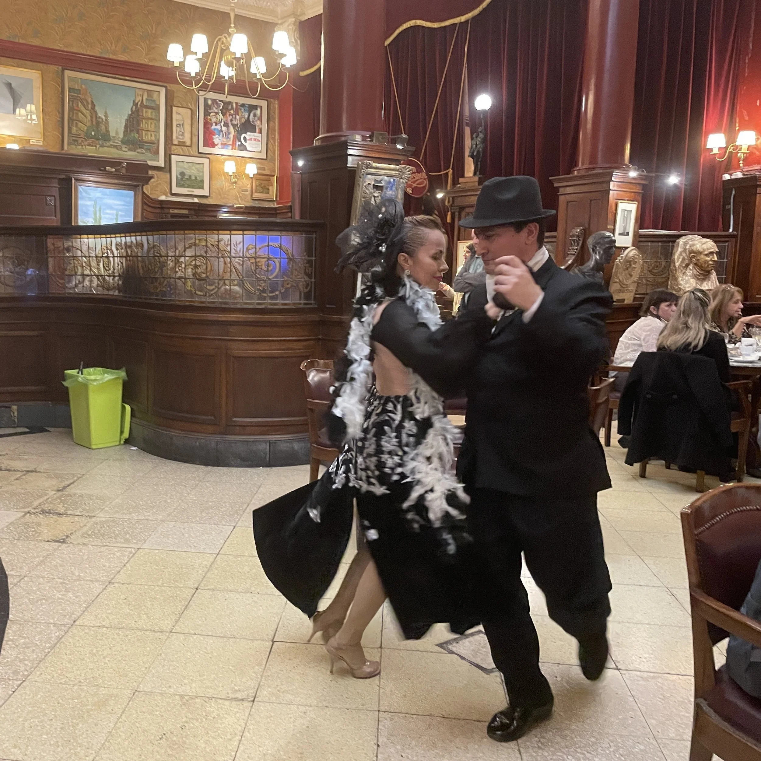 That evening, we returned to Café Tortoni for dinner, sharing a ham-and-cheese board, salads, and sandwiches. While enjoying the simple food, we watched tango dancers glide across the café floor — our first taste of Argentina’s vibrant culture. Then we tried to figure out how to buy a SUBE card so we could take the bus back to our rental.