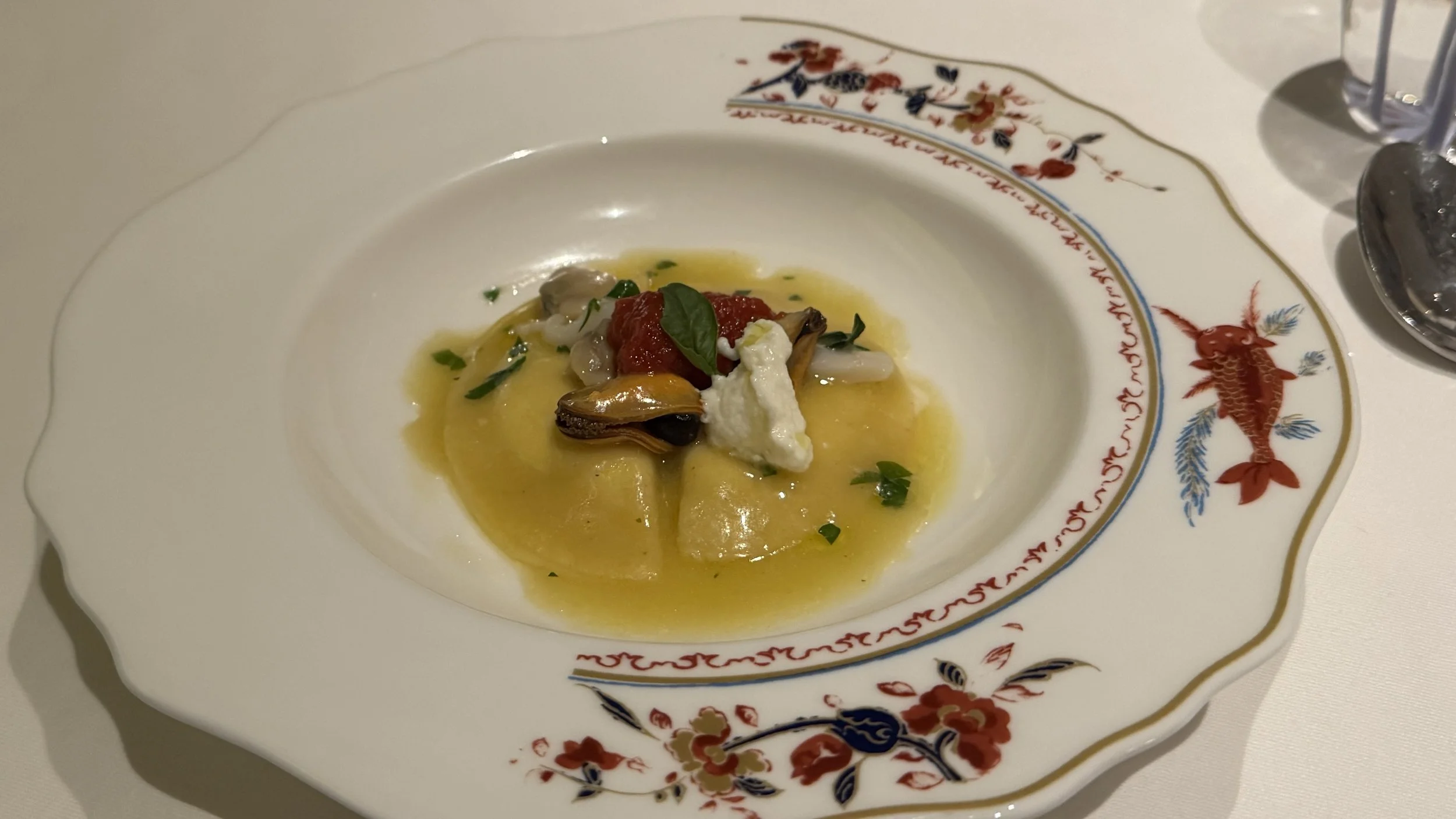 Dinner this evening was another eight-course tasting menu. The food was excellent—we especially enjoyed the two appetizer courses and the two pasta dishes, which were true highlights of the meal.
