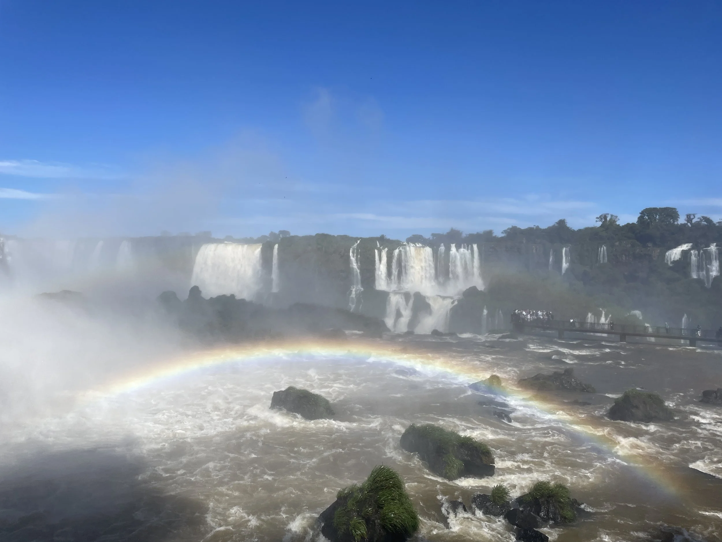 The view was absolutely breathtaking. A massive wall of waterfalls stretched before us, roaring with energy. As we walked along the trail toward the platform extending to the Devil’s Throat viewpoint, rainbows arched above the mist and the spray soaked us through. Watching speedboats dart into the thundering falls, just as we had the day before, only heightened the drama.