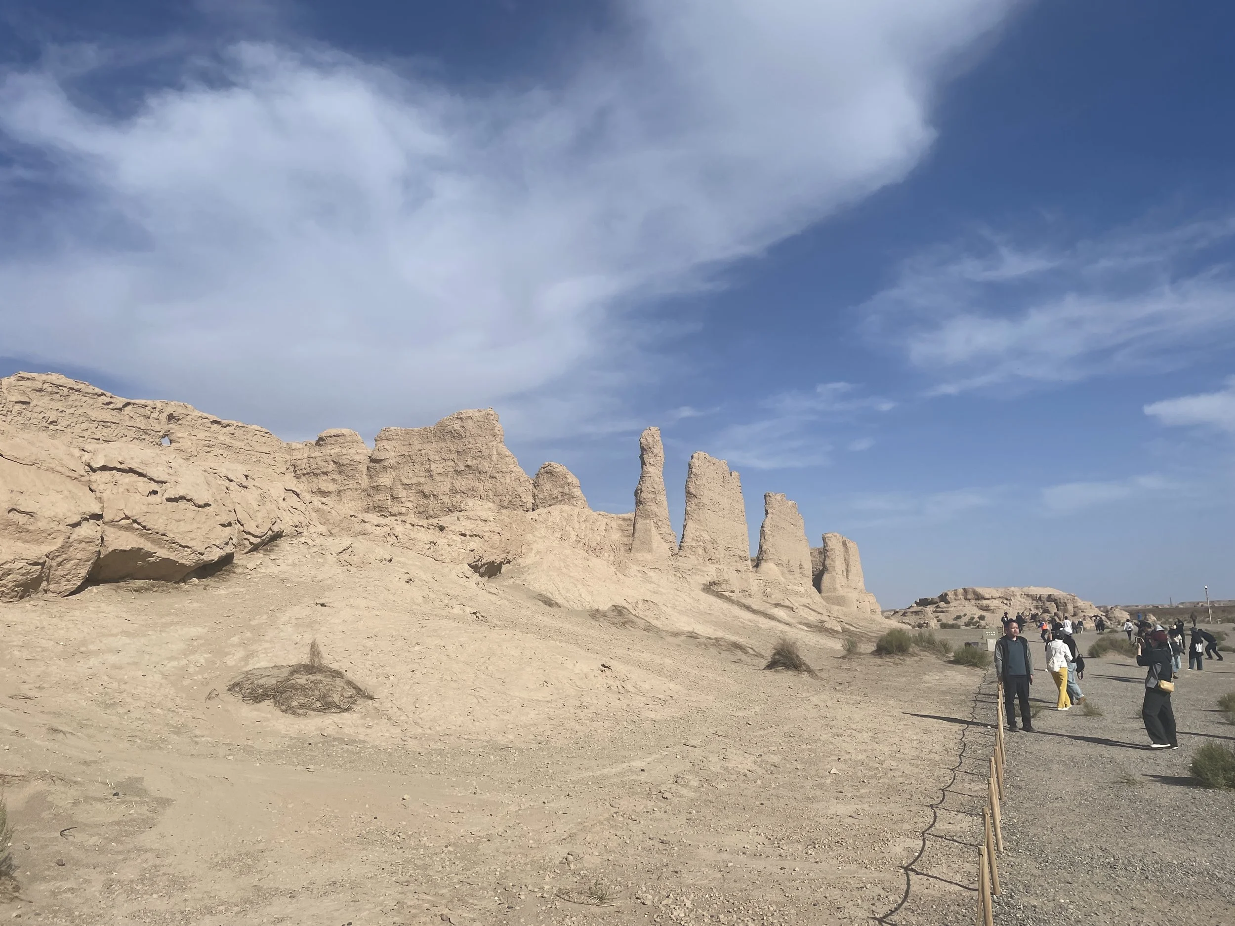 A shuttle took us to the Han Great Wall and the Large Square Castle, which lie at opposite ends of the park. It was astonishing to see portions of the Han-era Great Wall still standing after more than two thousand years—preserved by the dry desert climate and minimal human interference.