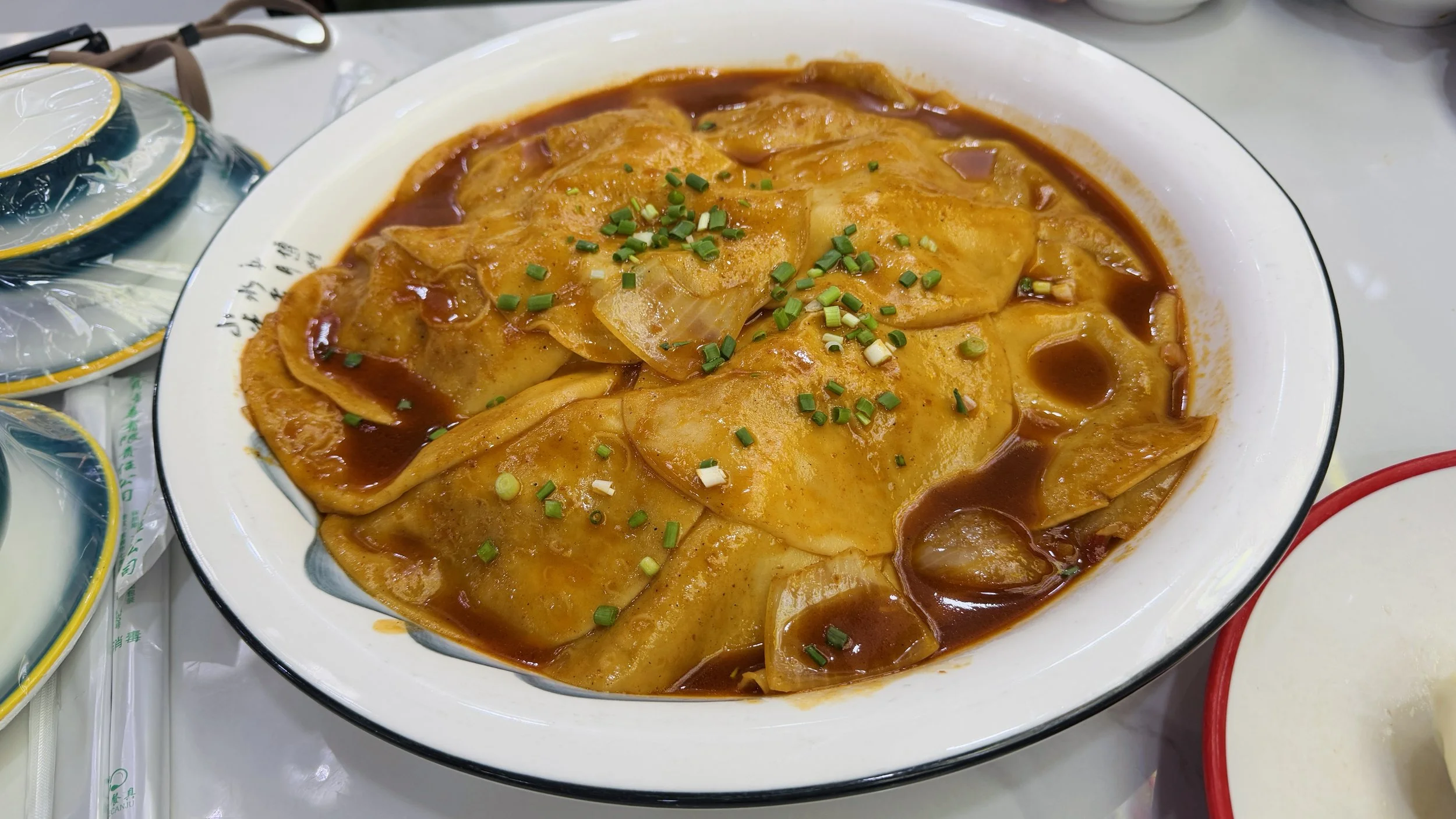 Menbing can be served with a variety of toppings. Locals usually pair it with lamb, but beef, chicken, or pork ribs are also common. We chose a small portion of pork-rib hu-yang menbing. It was rich and flavorful, but even the “small” portion was far too generous for the two of us. We were completely full after finishing barely half of it.
