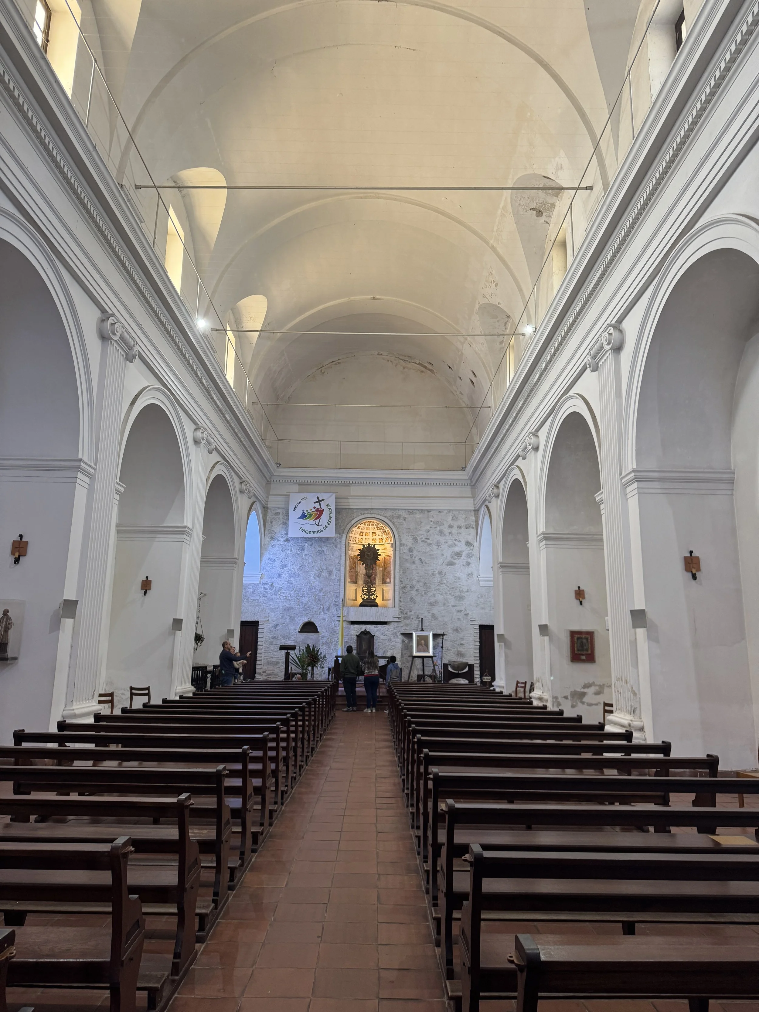 行程结束后,我们在附近找了一家温馨的巴西餐厅,点了几道地道的巴西菜,味道令人十分满足。随后我们步行前往下一个目的地——里约热内卢大教堂 (Catedral Metropolitana)。这座教堂的外观造型很独特,在一些人眼里或许很“丑陋”,但内部设计却极具震撼力,彩色玻璃透入的光线让整个空间显得很庄严。