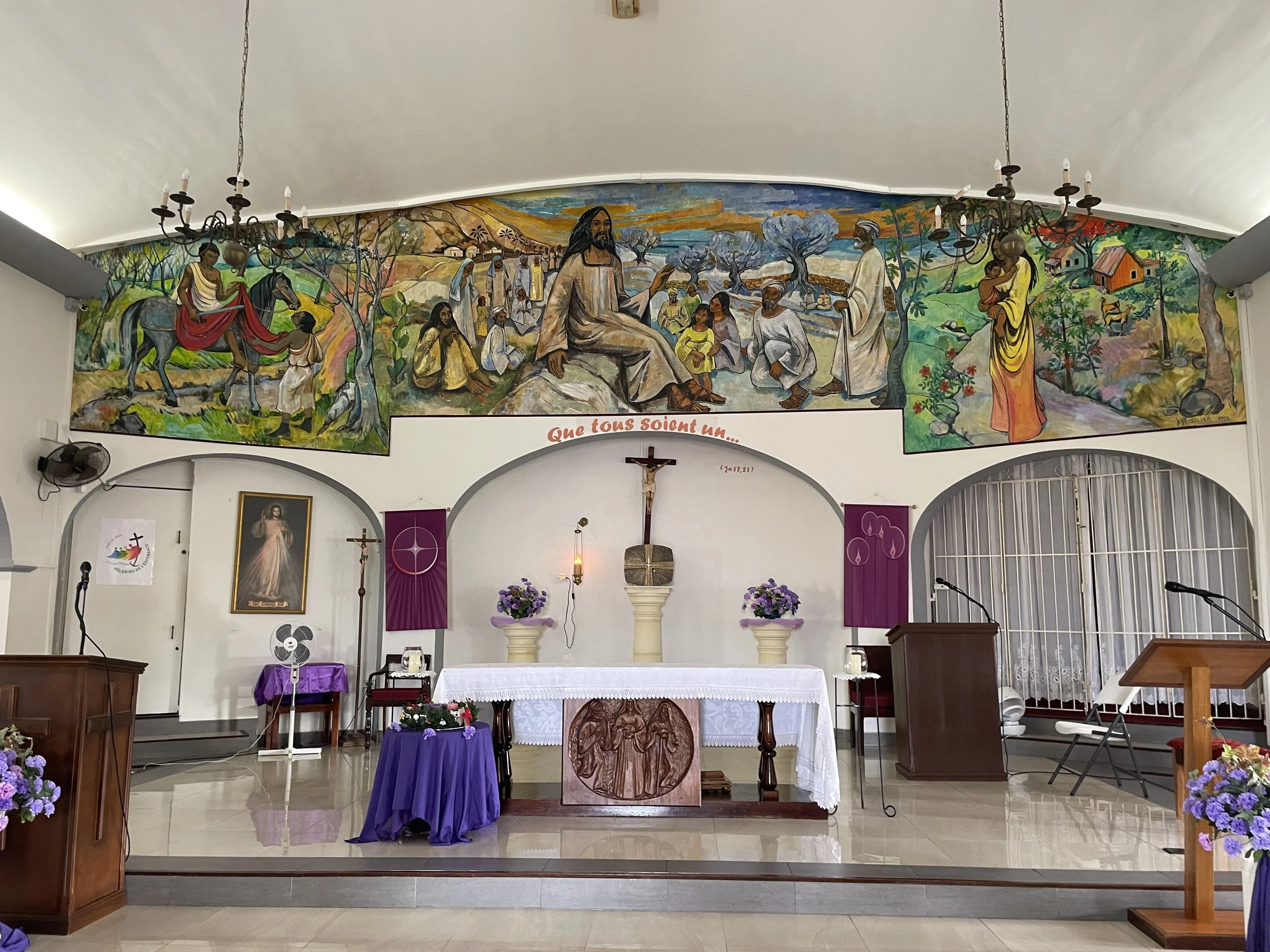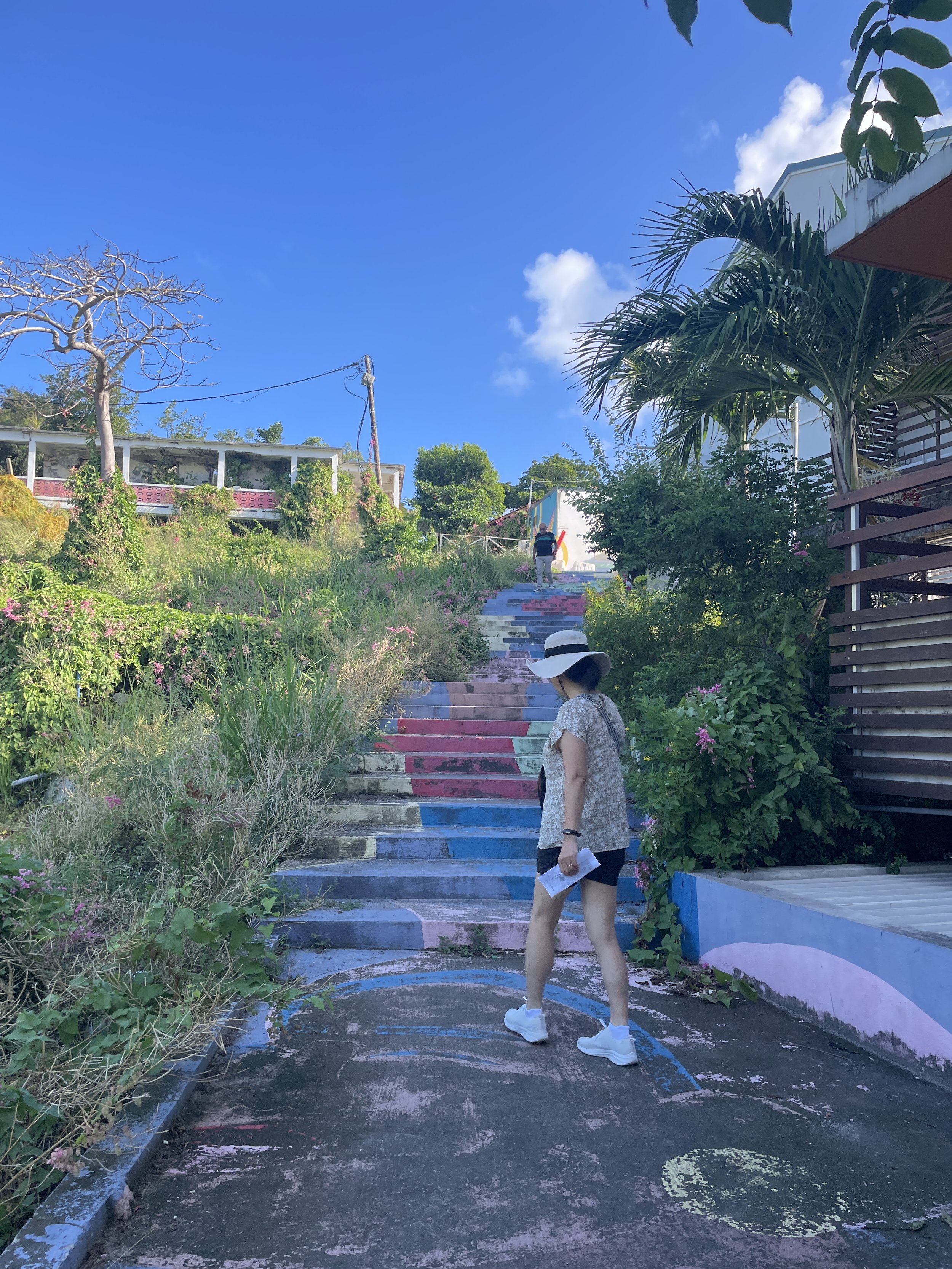 In the morning, we ventured out to visit Fort Louis and a small hillside church, enjoying peaceful views over Marigot Bay.