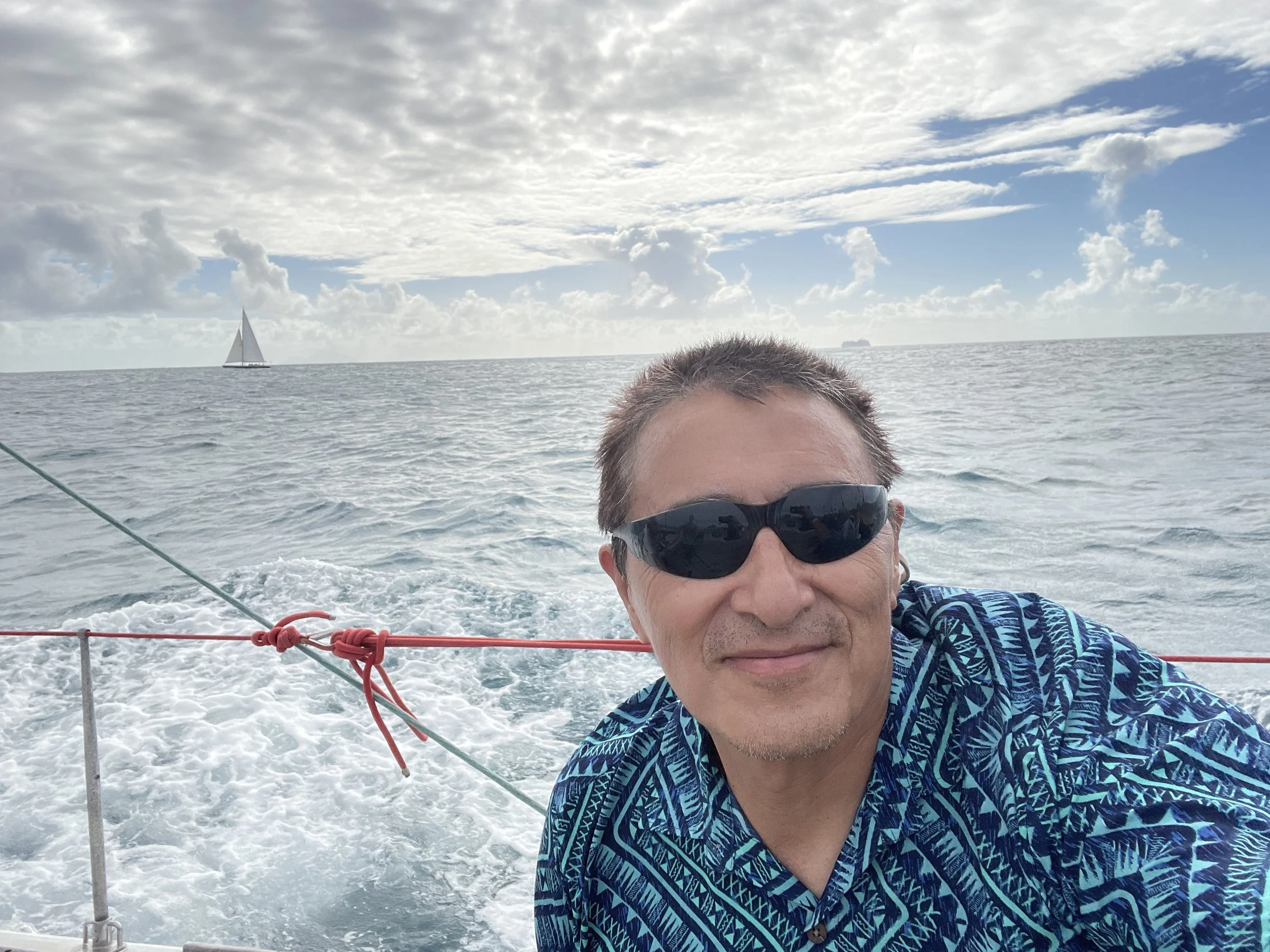 整整一个多小时,我们在海面上激烈对抗、你追我赶,过程既紧张又充满乐趣。在最后一分钟,帆船突然大幅倾斜,我们这一侧瞬间被一阵海水拍打上来,海水直溅到腰间,整个人都被彻底浸湿了。这次体验既刺激又难忘,毫无疑问,这是我们整个加勒比行程中最精彩、最棒的一次岸上活动之一。