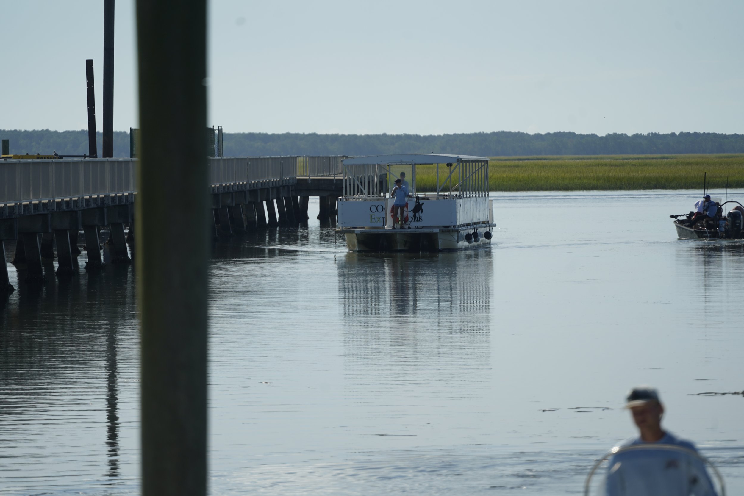 On September 6, we set out for Bulls Island. We boarded a scenic 30-minute ferry ride that wound through tidal creeks before reaching the island in the Cape Romain National Wildlife Refuge. Once ashore, we walked through lush jungle trails and explored Boneyard Beach. Along the way, we searched for sand dollars and collected beautiful shells. The sun was scorching, but we had a wonderful time. On the ferry back, we were greeted by playful dolphins swimming alongside the boat.