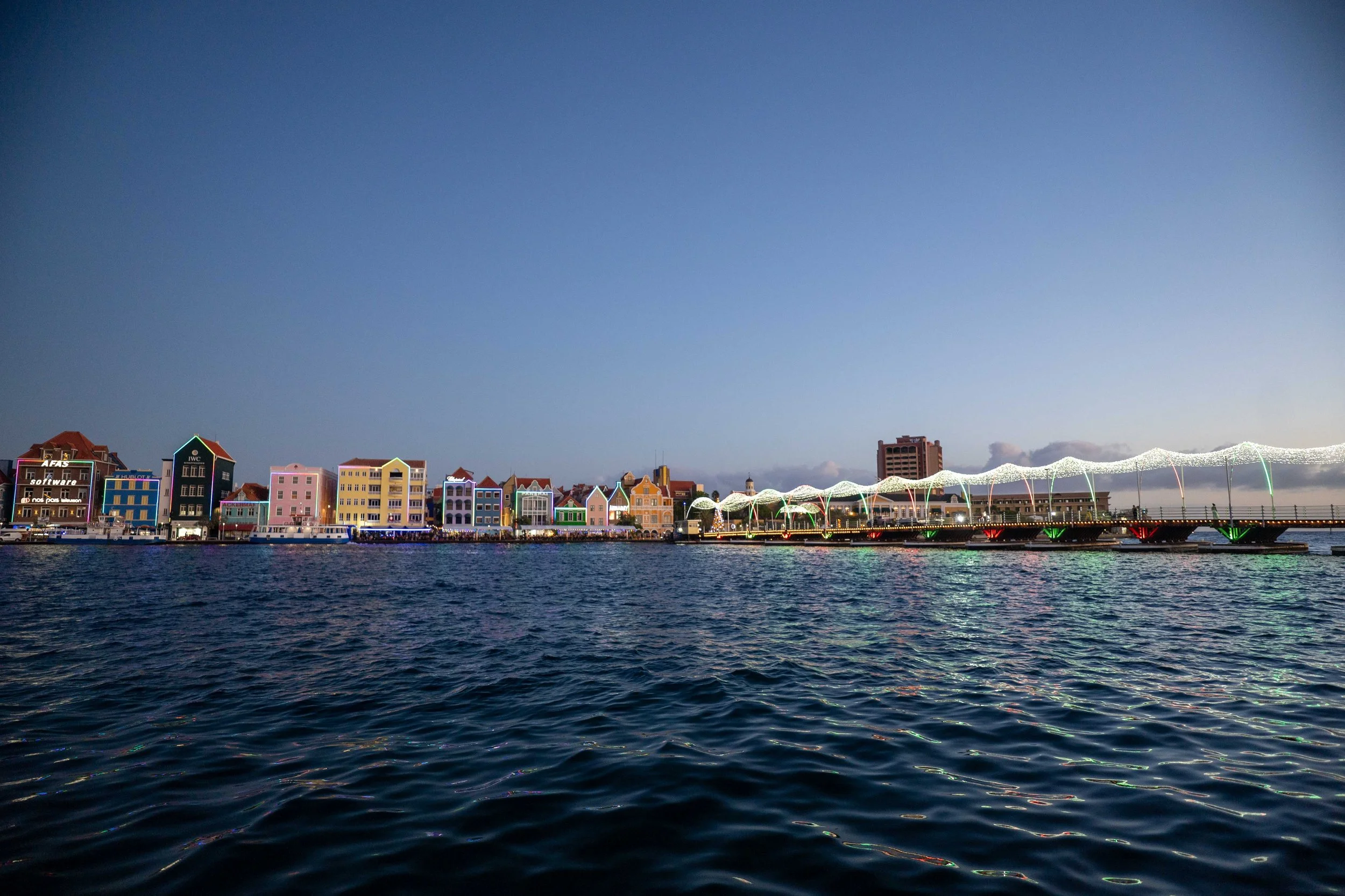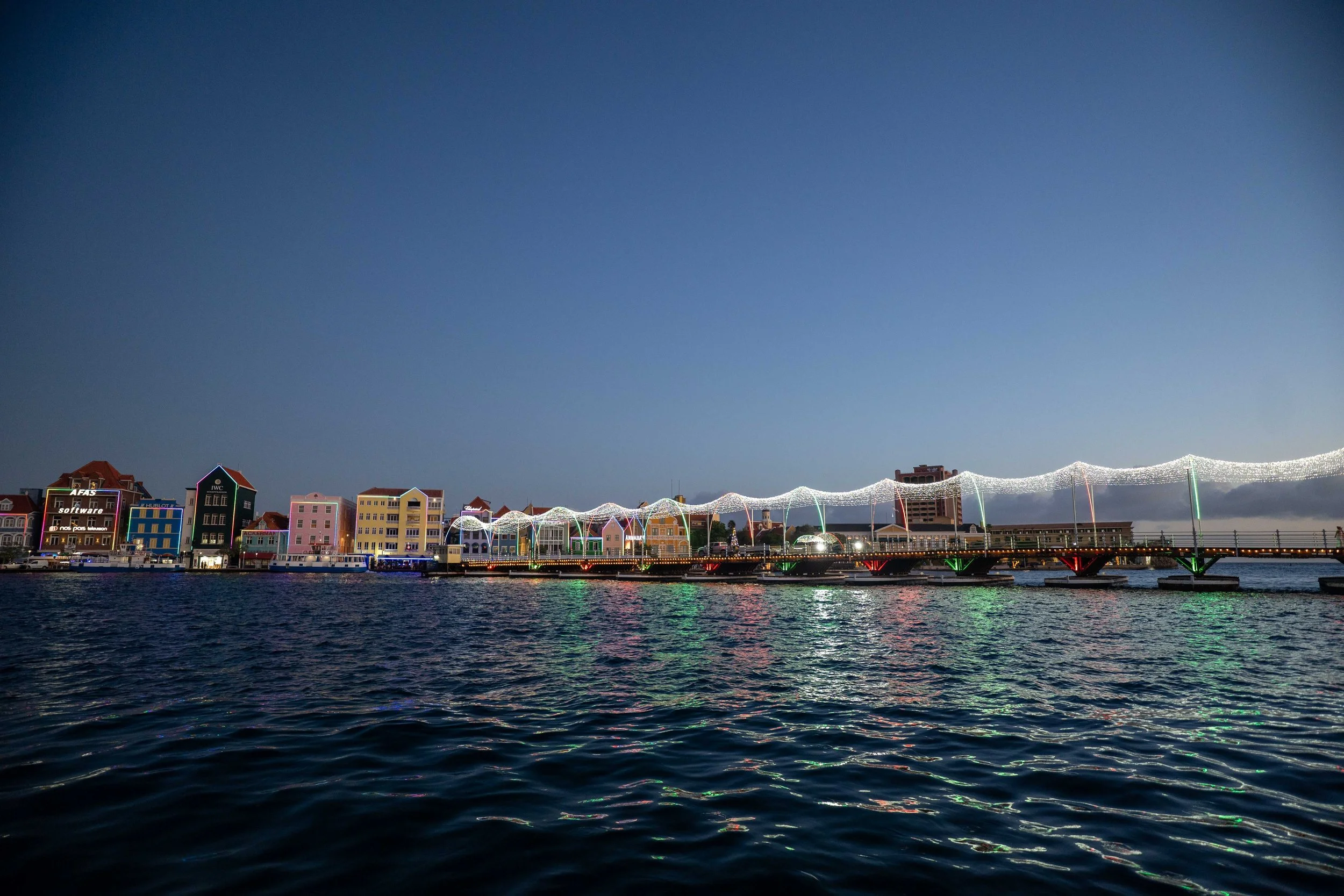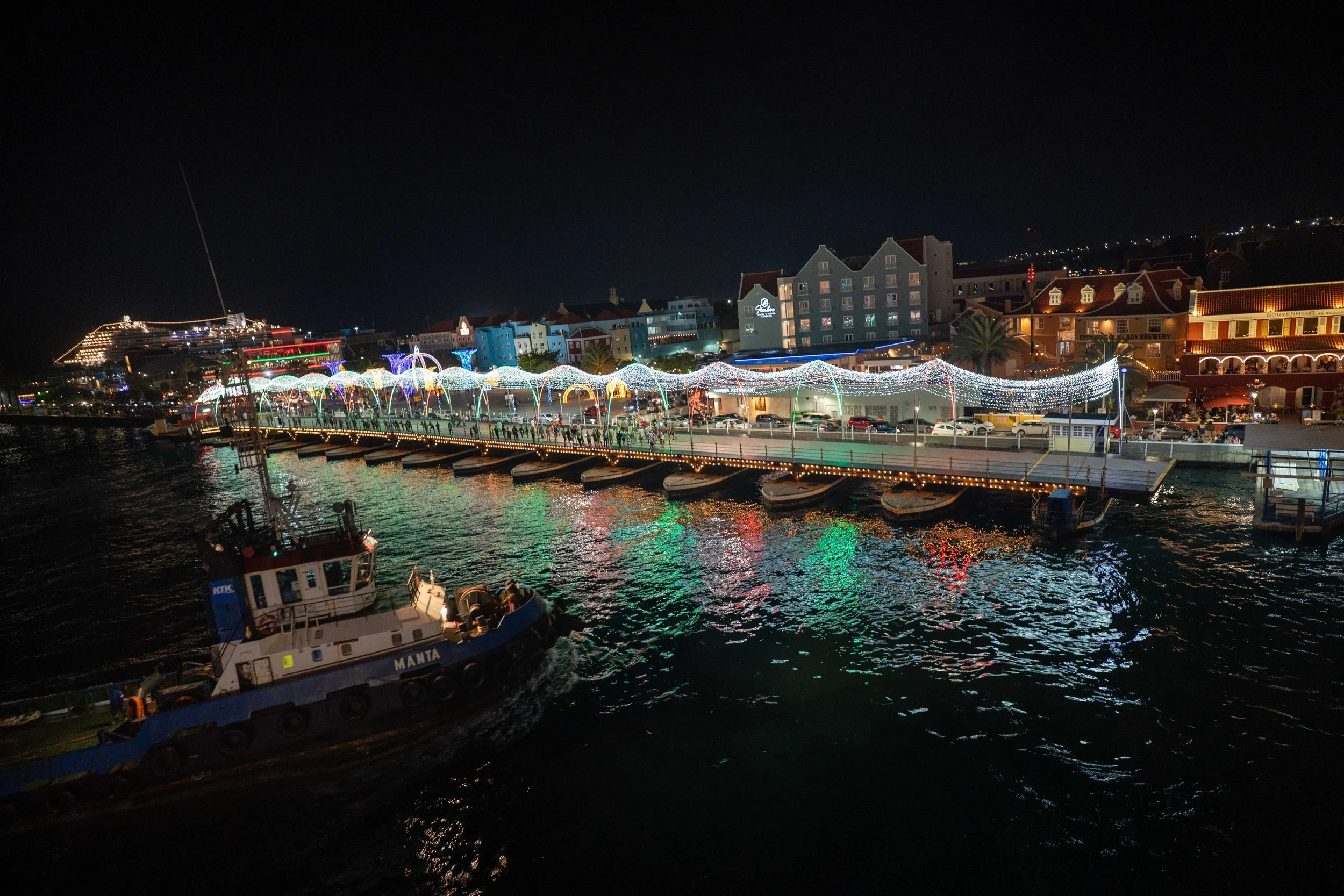 Crossing the beautifully lit bridge, we lingered over the night views of Curaçao before returning to the ship.