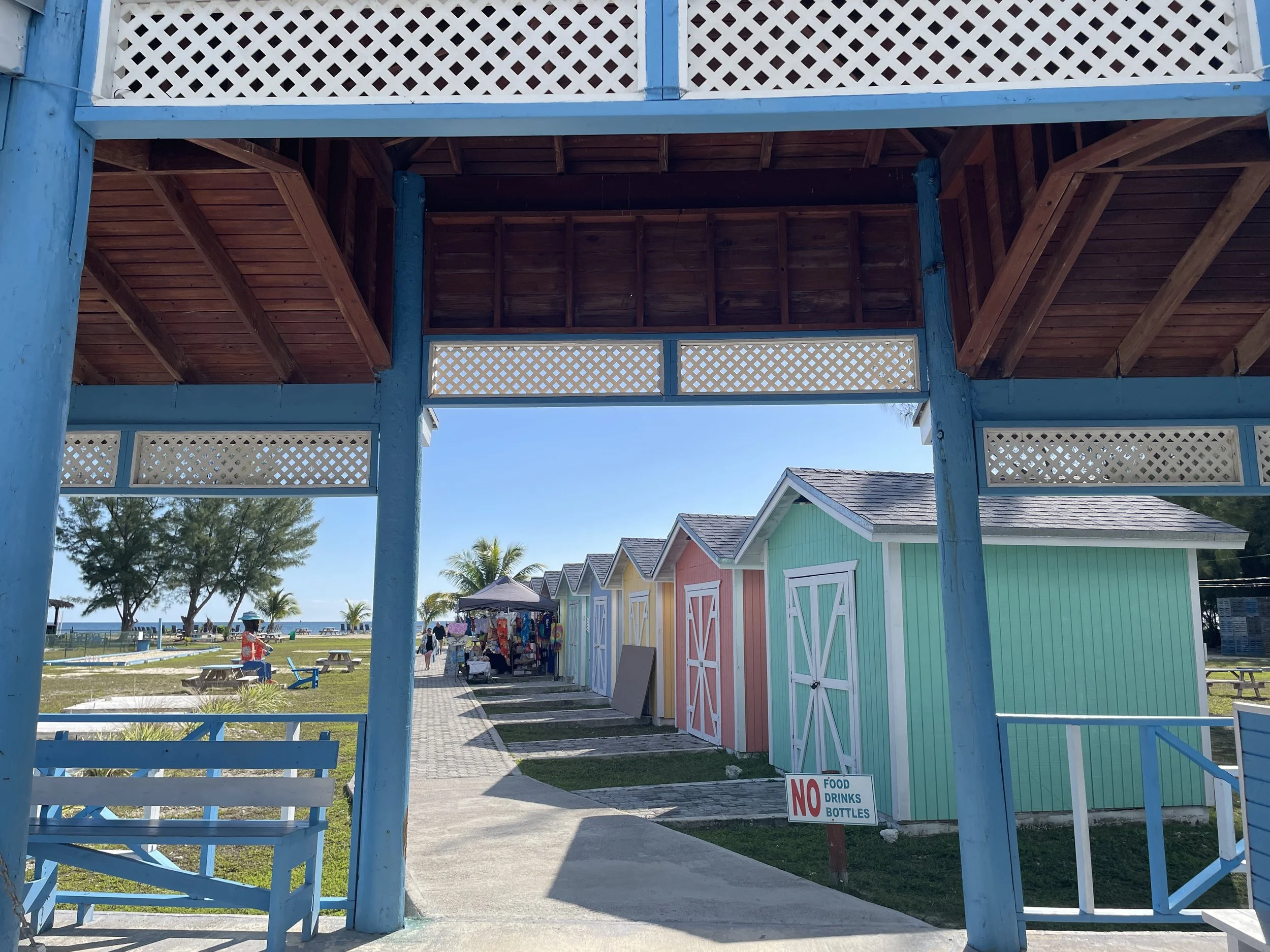 但行程并未止步于此。之后我们继续前往 Junkanoo Beach Club 享用午餐并在沙滩玩水休息。烧烤鸡和排骨味道不错,但由于这趟旅程中我们已经走访了太多各具特色的海滩,这一站的沙滩太一般,相对逊色些,所以这后半段的行程也因此略显乏味。