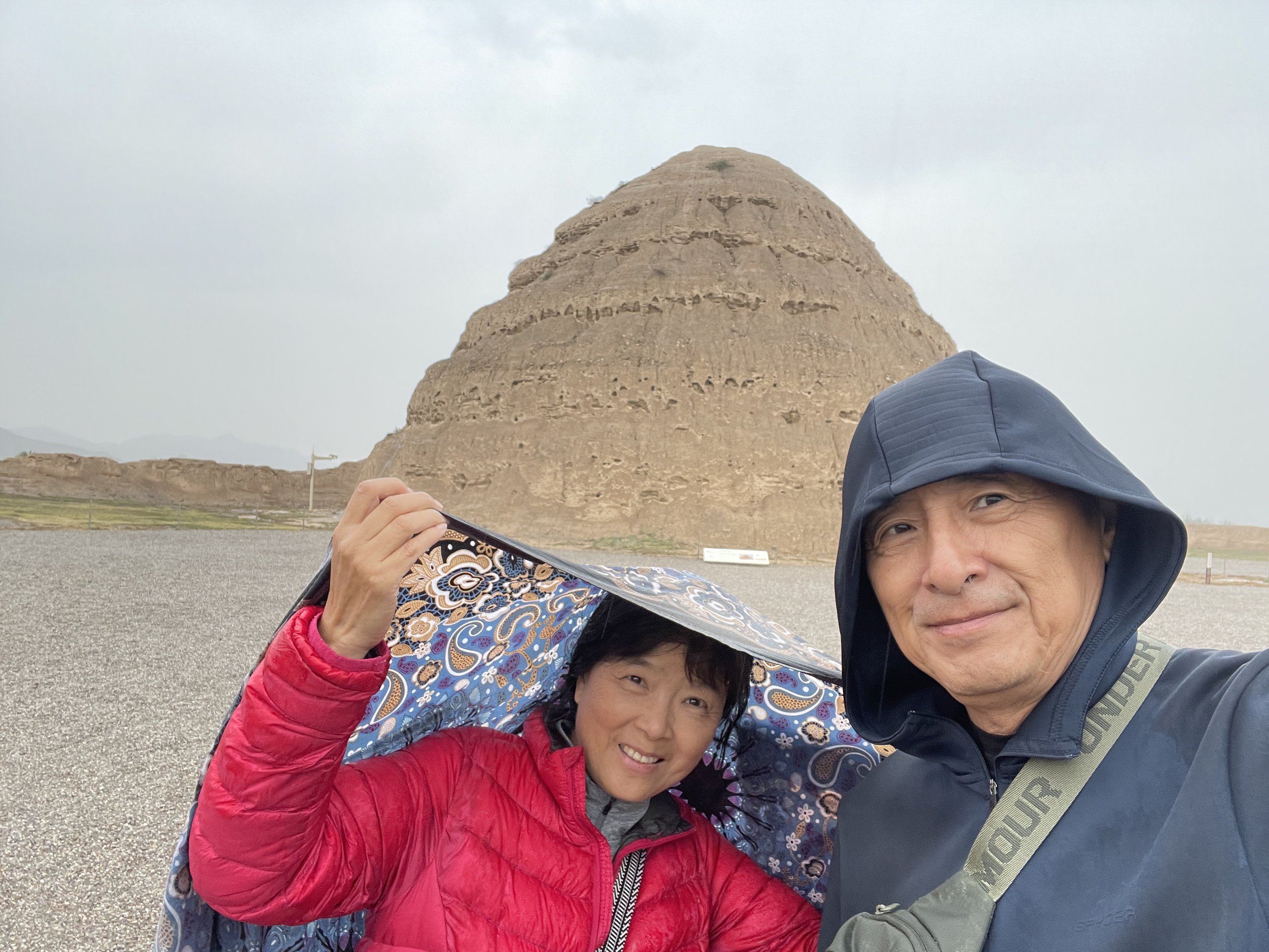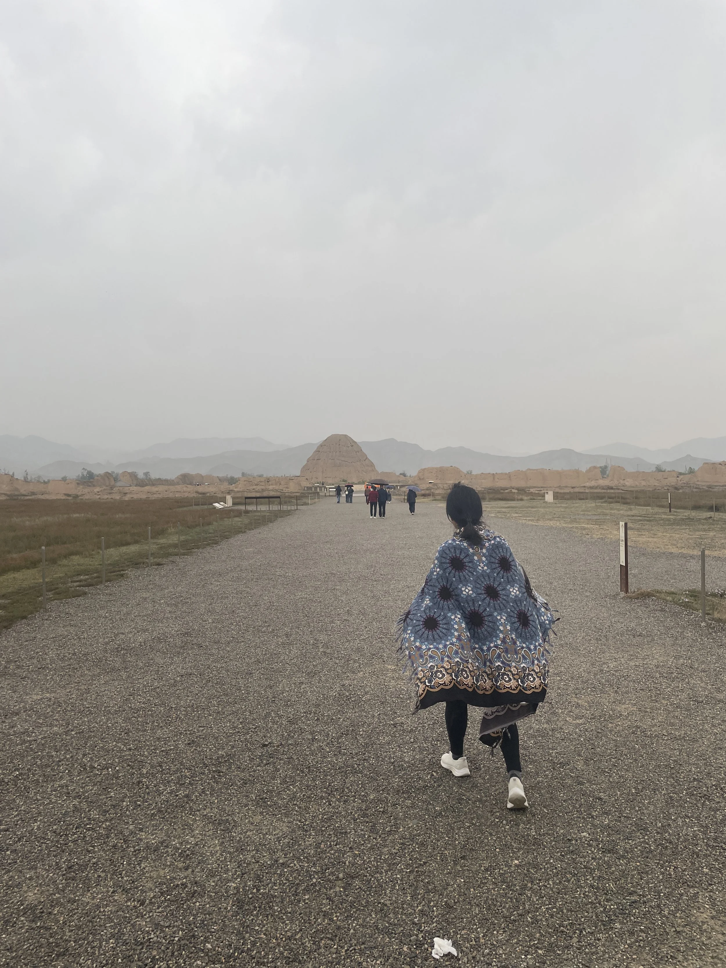第二天,我们首先拜访了从上海去大西北扎根办学工作一辈子的阿姨,姨父一家并且与他们共聚午餐。周到的表弟特地选了家南方口味的饭店,地道美食不比上海差。下午参观了被誉为“东方金字塔”的西夏王陵(Western Xia Tombs)。原本对西夏的历史与文化知之甚少,先参观西夏博物馆的展览,让我们初步了解这个从宋朝分裂出来的王朝,并对其在中华文明中的独特贡献有了新的认识与敬意。然后坐接驳车去看王陵,虽然参观三号陵时天公不作美,细雨纷纷,但这次行程依然让人觉得不虚此行。