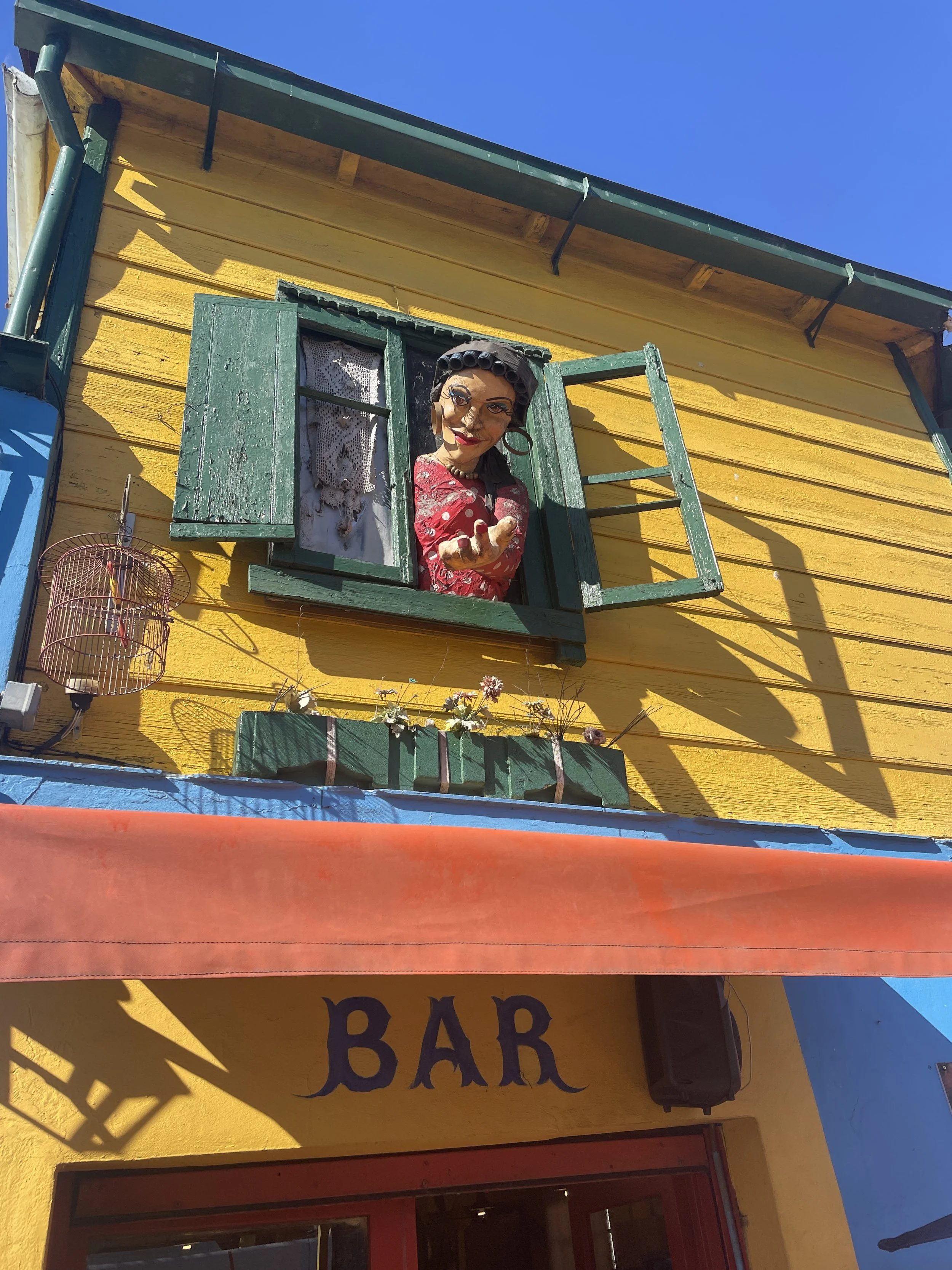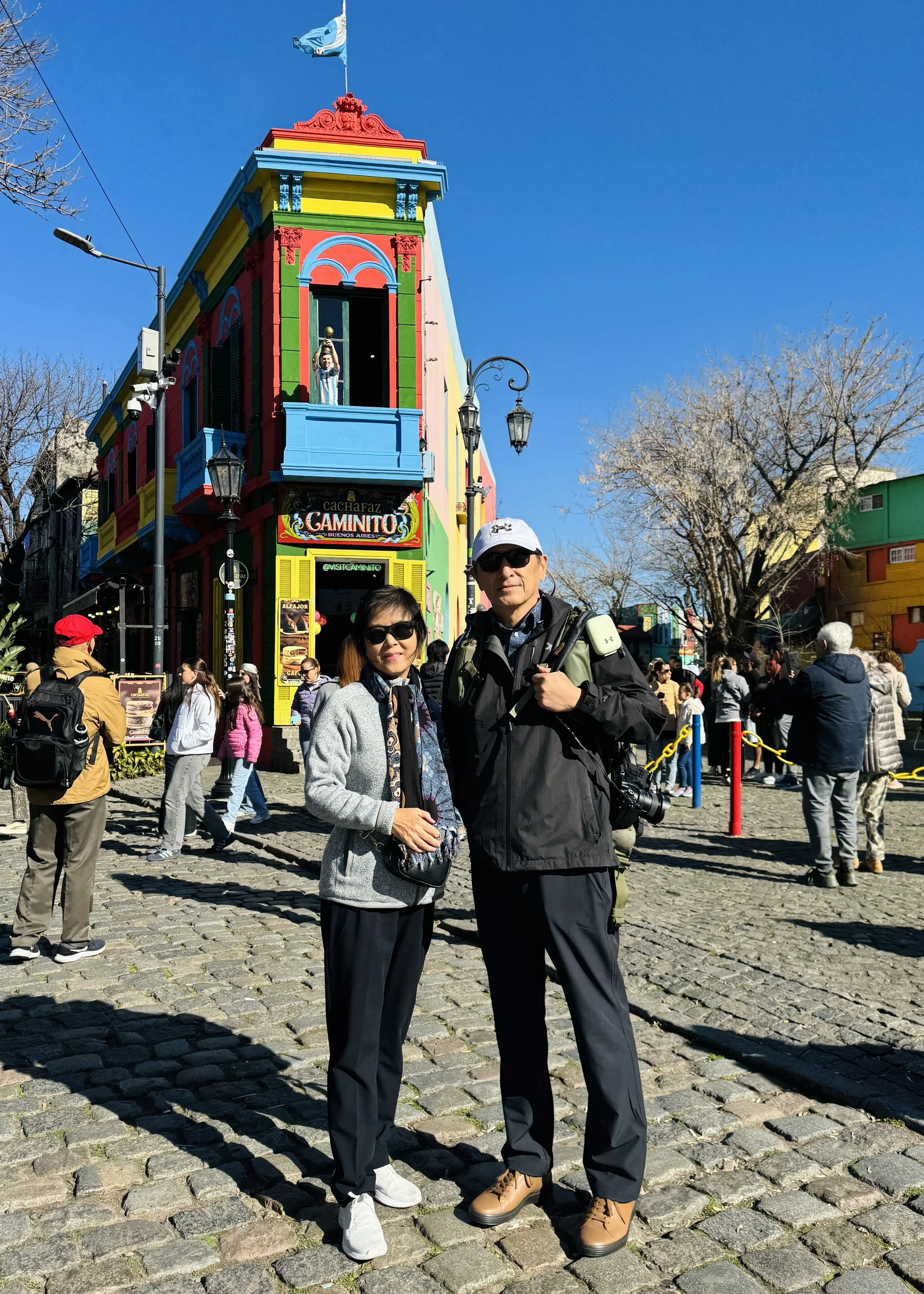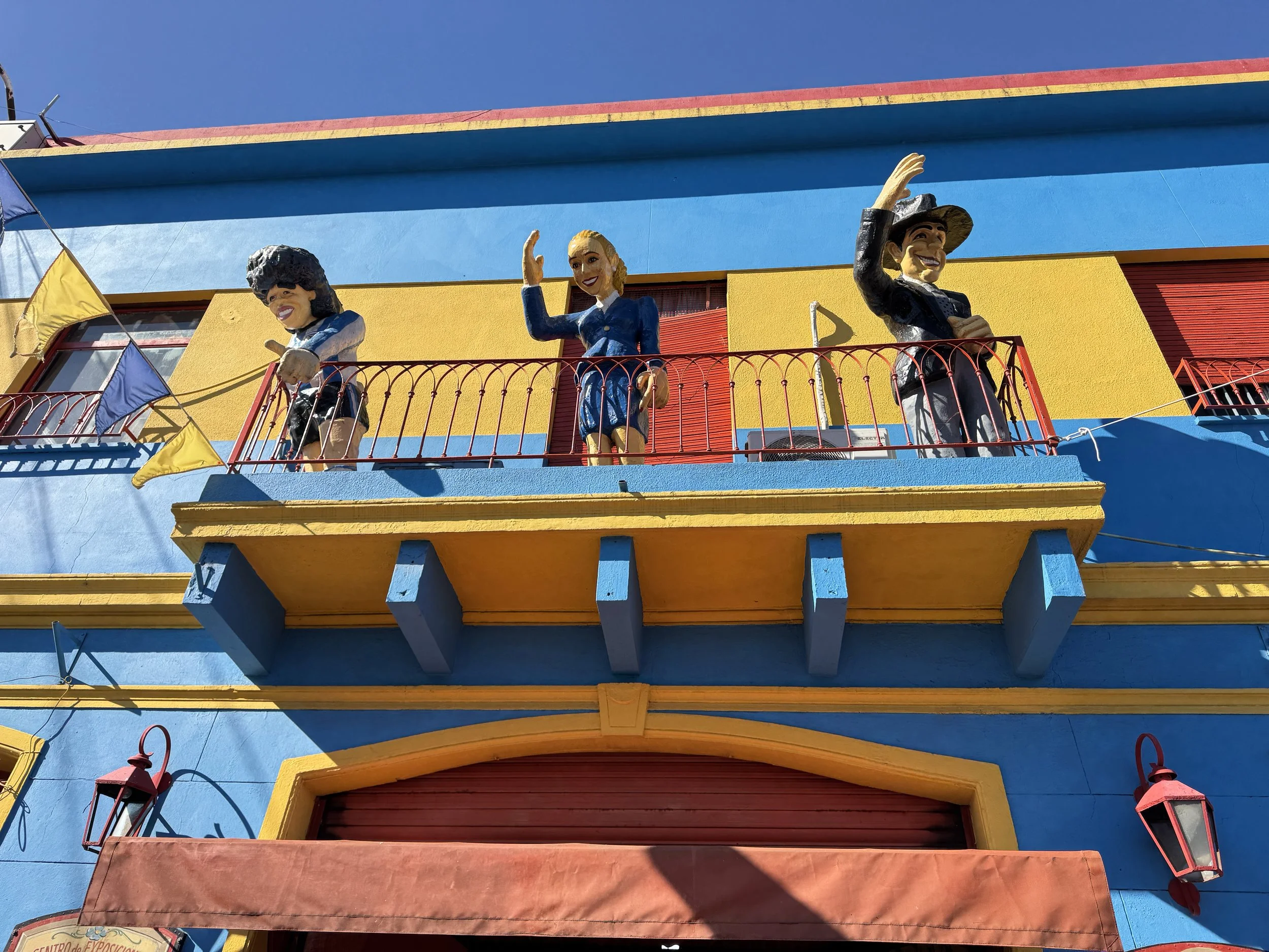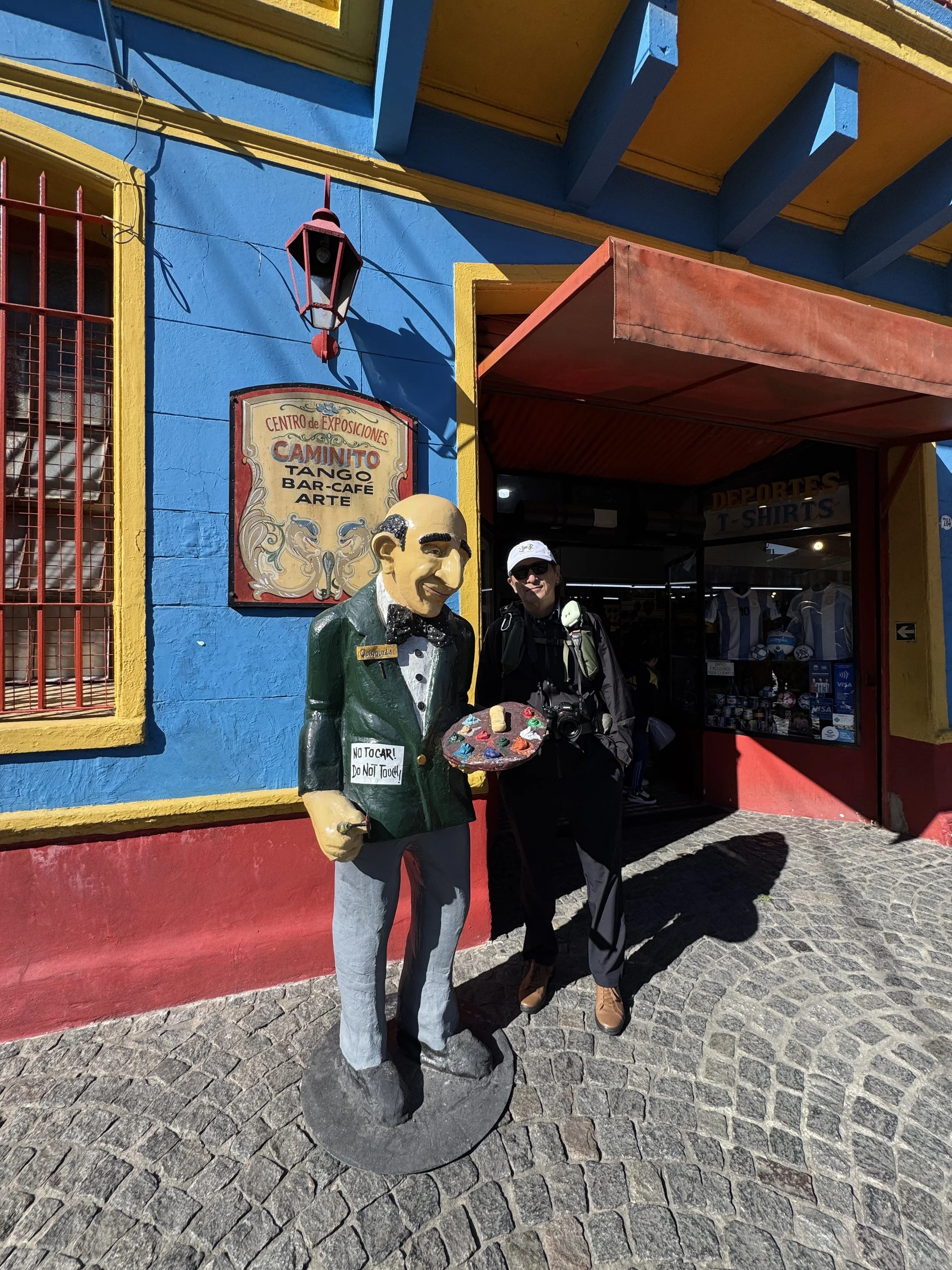 今天一早我们坐公交车来到了布宜诺斯艾利斯最色彩斑斓的街道——拉博卡 (La Boca) 的 卡米尼托 (Caminito)。这里以五颜六色的房屋、街头探戈表演、手工艺摊位和热闹的小餐馆而闻名,充满活力与独特魅力。我们去的早,游客还不算太多。