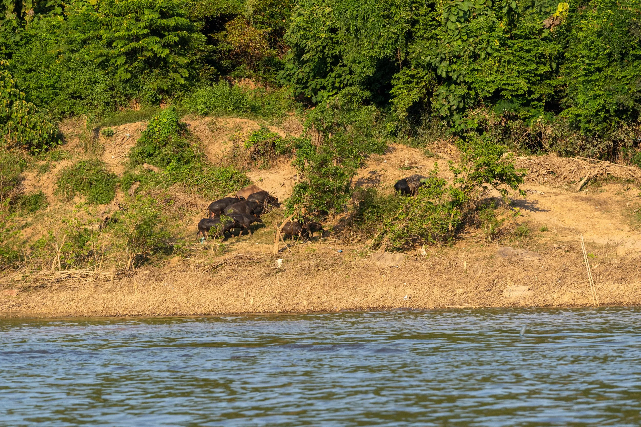 这次行程中最美妙的部分是在乘船沿湄公河返回城市时,夕阳将沿岸的景色笼罩在金色的余晖中,我们目睹了旅途中最壮丽的日落之一。