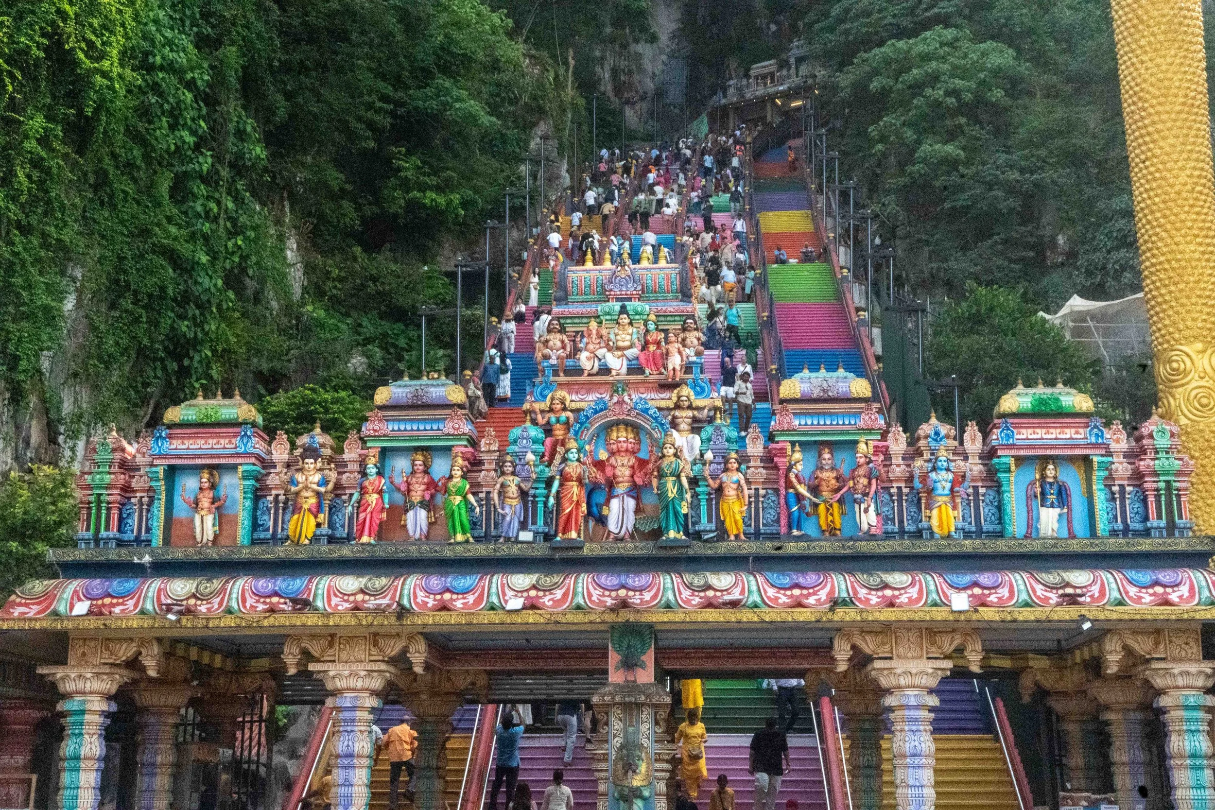Batu Caves is a famous limestone hill complex housing several Hindu temples. The main Temple Cave is reached by climbing 272 dramatic, brightly colored steps.