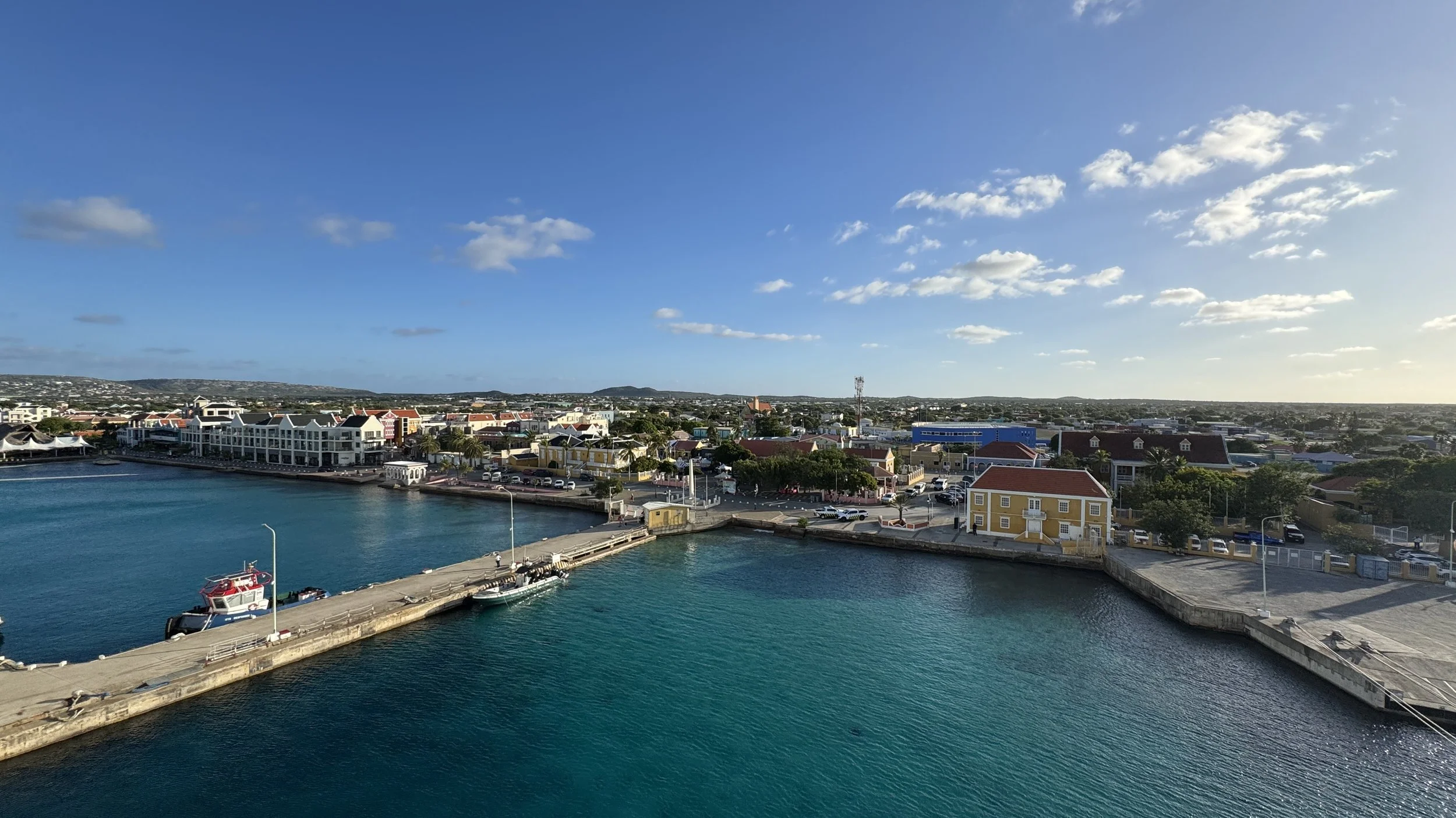 今天我们的船来到加勒比海著名的荷兰 ABC 群岛之一的库拉索(阿鲁巴 Aruba、博奈尔 Bonaire、库拉索 Curaçao)。库拉索距离委内瑞拉只有约40英里。我们到访期间,有关周边海域局势的消息频频登上新闻头条:海上军事活动升温、航母现身、油轮被扣押,甚至还有诺贝尔奖得主戏剧性逃离的消息。这些都提醒我们——尽管岛上氛围轻松、但它所处的位置,紧邻着一片充满政治紧张感的海域。