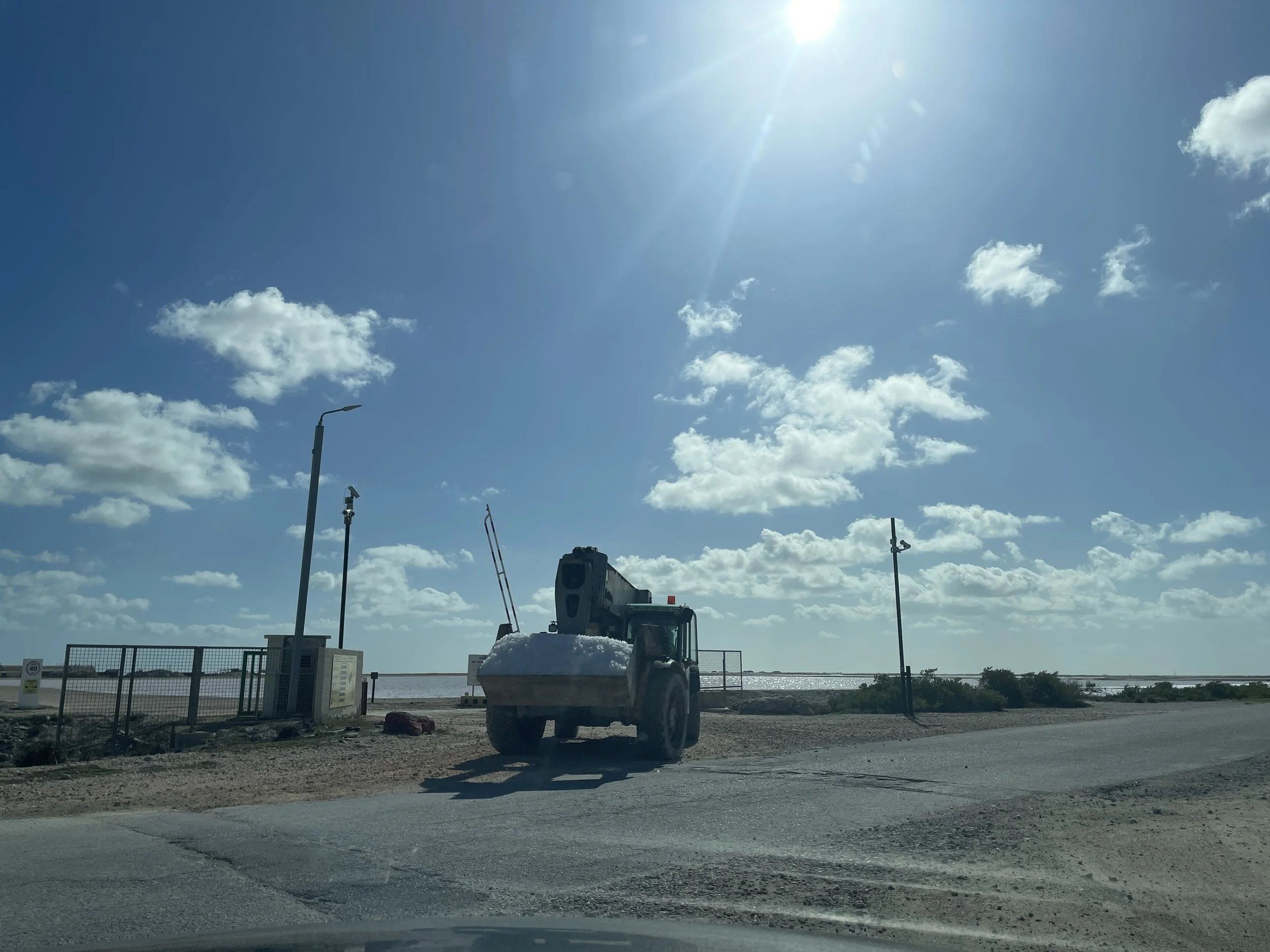 Bonaire’s southern region is dominated by vast salt flats, shimmering in different shades of pink, blue, and white. Sea foam was blown inland by strong winds, and from a distance we could see large pyramids of bright white salt rising against the flat landscape. At the salt company’s loading dock, the operator had even placed a small wooden box filled with salt crystals for visitors to take home. Another tourist kindly shared a ziplock bag, and we took a few salt rocks as souvenirs.