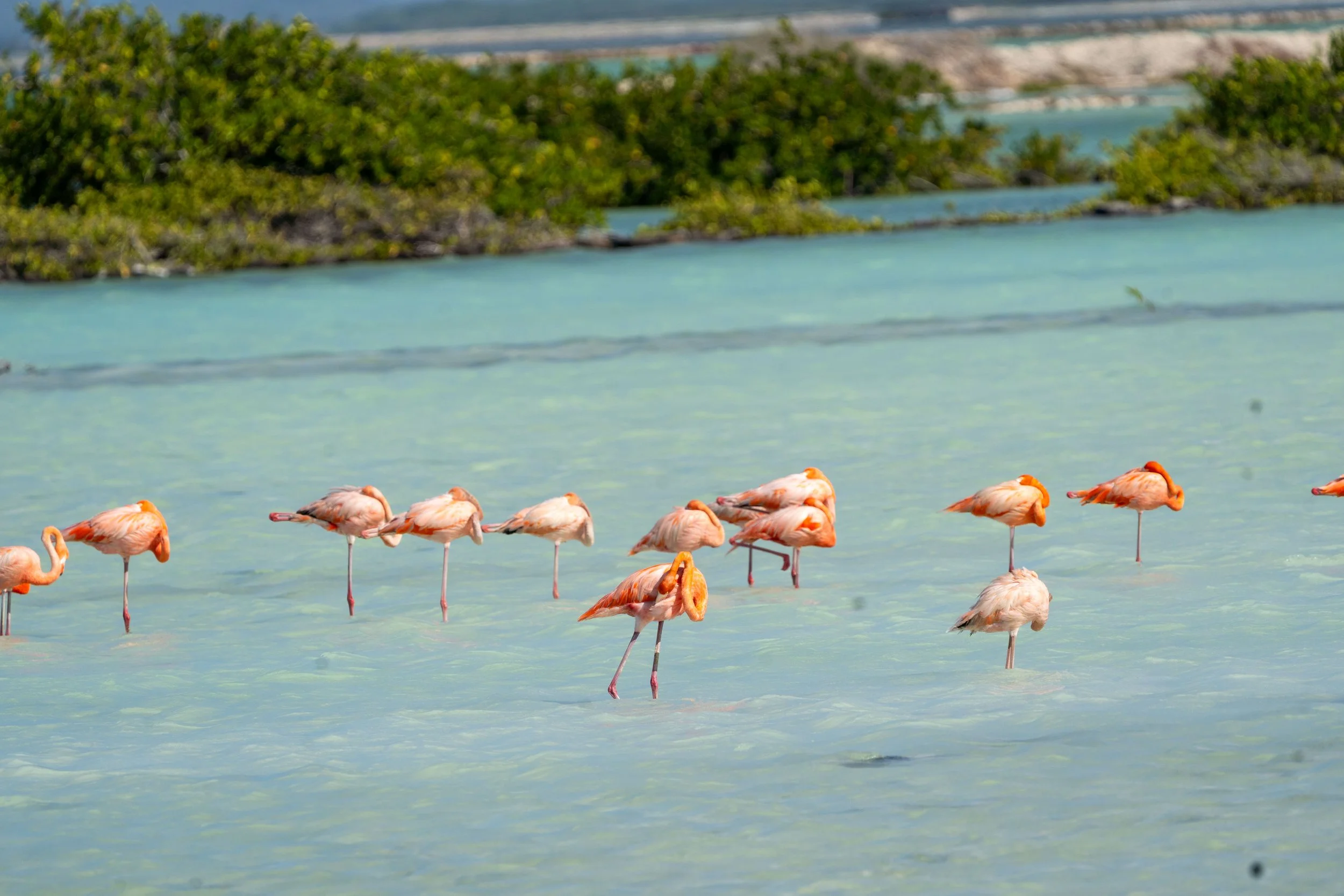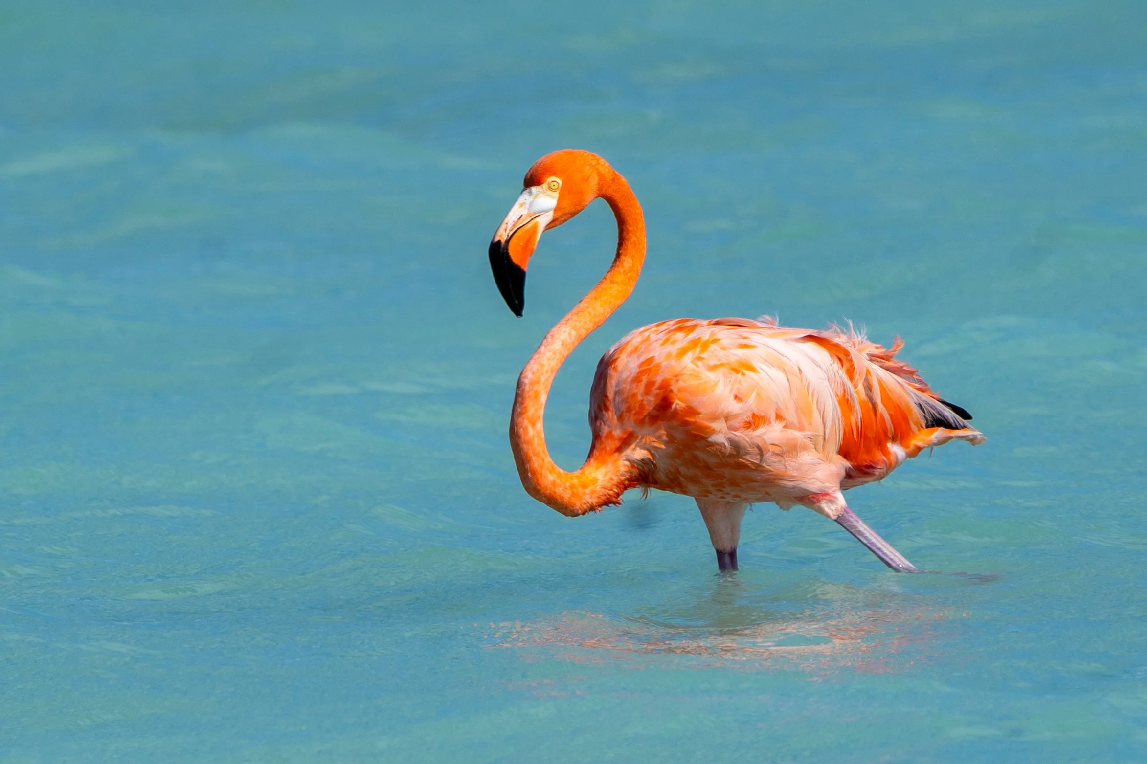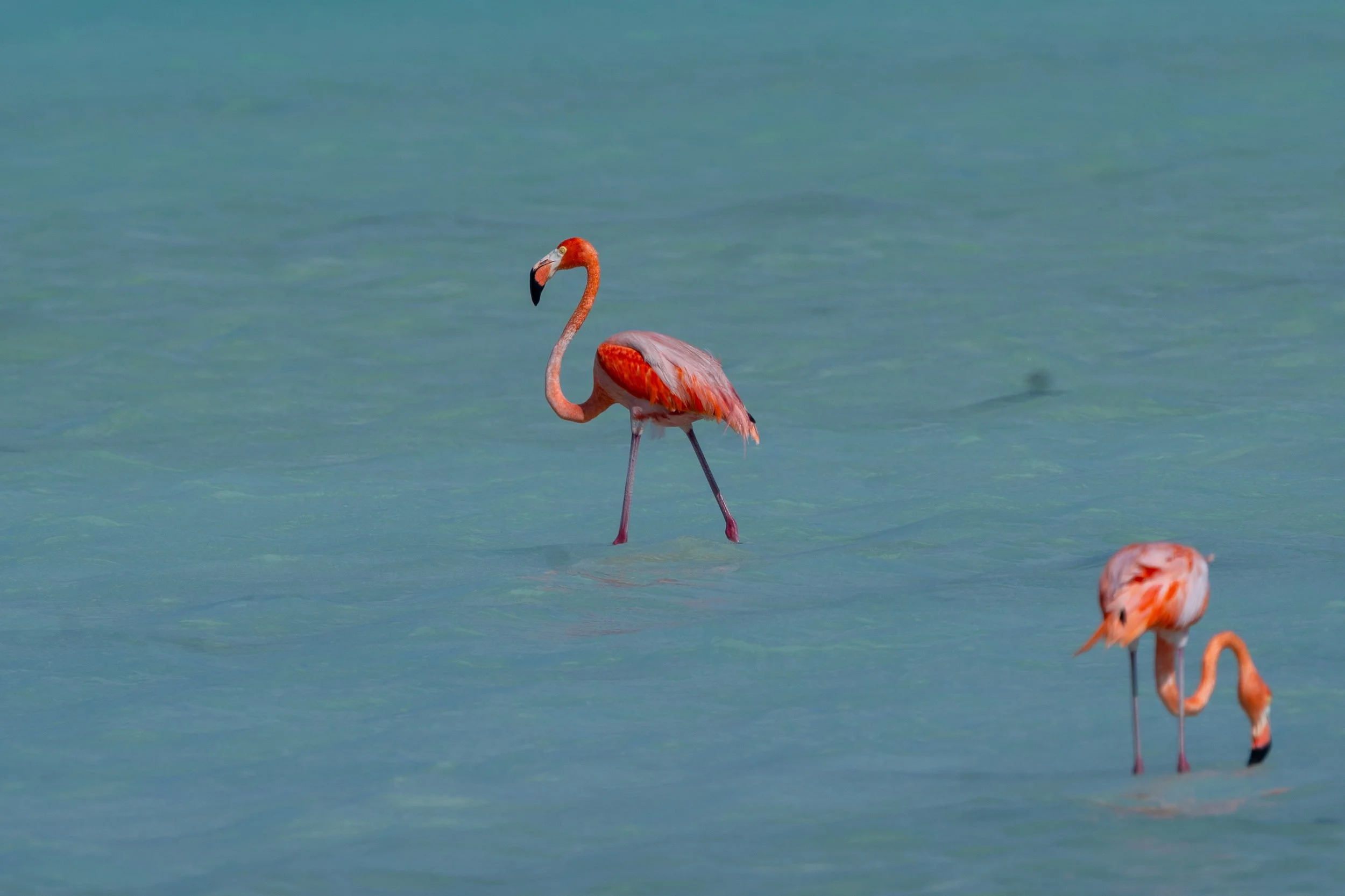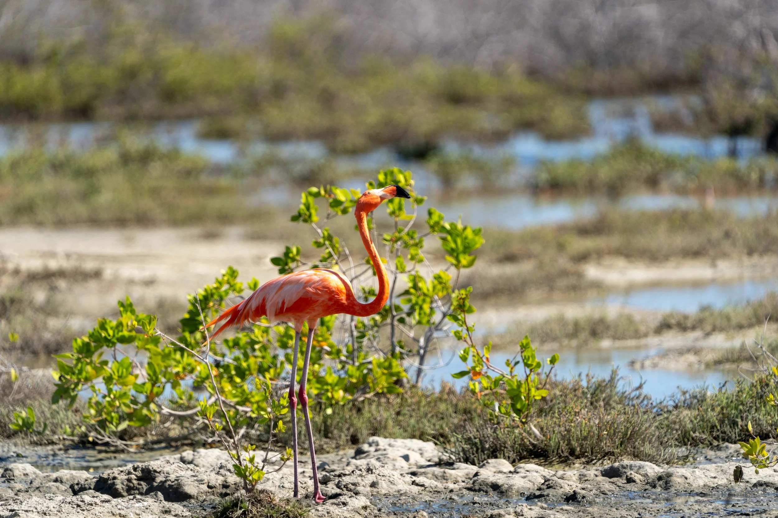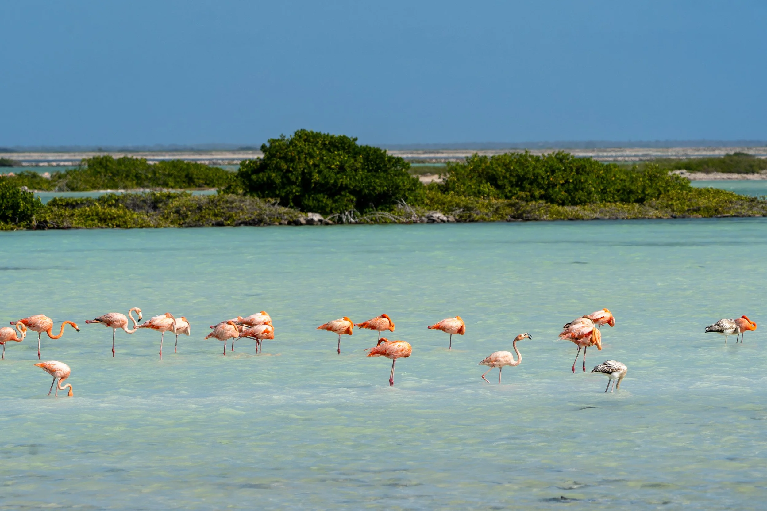 博奈尔岛的粉红火烈鸟受到严格保护,它们在浅水中自由漫步。游客可以在公路旁短暂停车拍照,但不能进入它们的活动区域。借助我们的长焦镜头,成功拍下了几张火烈鸟优雅身姿的照片。